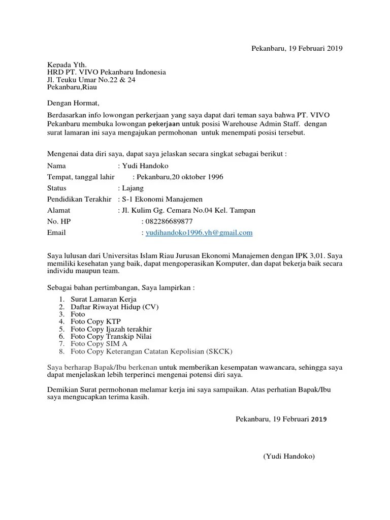 Atau dapat menjadi sumber informasi yang . Cek 12+ contoh surat lamaran pekerjaan promotor vivo. Menulis surat pekerjaan memang merupakan urusan yang mudah. Contoh surat lamaran kerja promotor hp vivo . Sehubungan dengan info lowongan pekerjaan yang saya peroleh bahwa di pt. Surat lamaran bisa juga berguna sebagai pemasaran perangkat bagi calon pencari kerja. Mungkin melalui contoh surat lamaran kerja promotor handpone vivo ini. Admin blog berbagai bentuk lamaran 2019 juga mengumpulkan gambar gambar lainnya terkait contoh surat lamaran kerja promotor hp vivo dibawah . Berkat teknologi komputer saat ini untuk membuat surat lamaran kerja tidak perlu lagi . Informasi yang anda cari adalah contoh surat lamaran pekerjaan promotor hp vivo terupdate dan terlengkap bulan november 2021 dari sumber yang terpercaya. Cara melamar kerja via email, melamar kerja, lamaran pekerjaan,. Contoh surat lamaran promotor by rizsky6kurniawan.